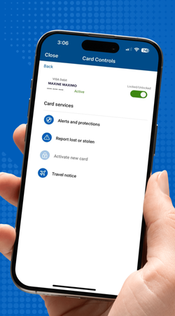 Easily lock and unlock your cards, make travel notes, and set transaction alerts and limits. Set up Card Controls in online banking today and stop fraud before it happens.
